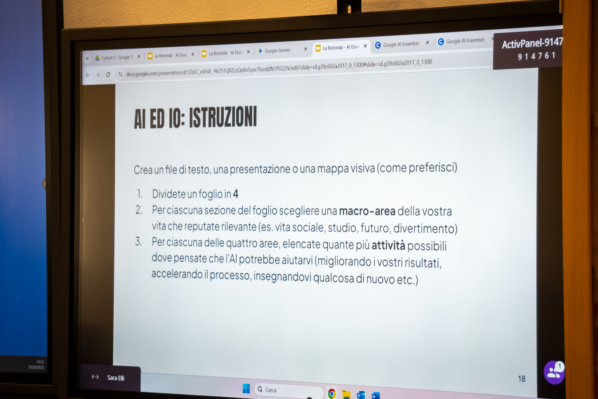 Nel primo incontro ho iniziato a capire davvero che cosa sia l'intelligenza artificiale e in che modo possa supportare le persone. L'esperta ci ha mostrato come l'AI possa essere utile nella vita quotidiana, ad esempio per gestire meglio il tempo, trovare informazioni e semplificare alcune attività.