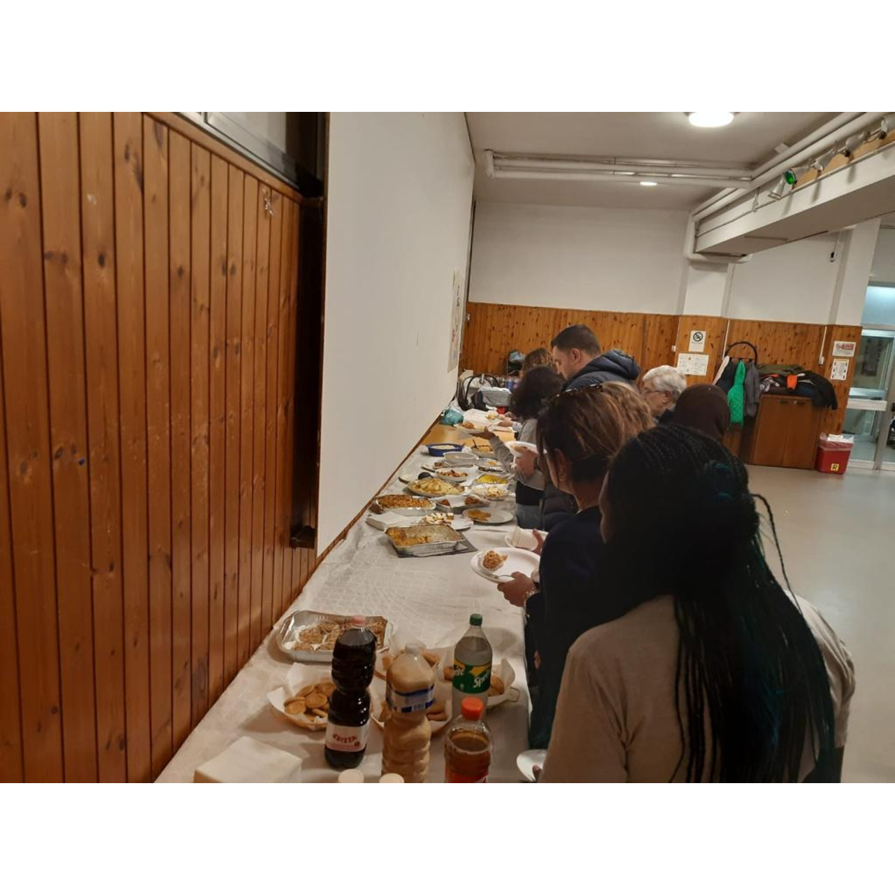 "Alla cena erano presenti quasi tutti i nuclei ospitati nello stabile. Ogni famiglia ha portato una parte di sé: un piatto tipico del proprio paese di origine. Ogni piatto ha riempito la sala dell’oratorio S. Arialdo di profumi, alcuni etnici e lontani, altri più conosciuti. La cucina e i sapori hanno sempre avuto un grande potere, quello di smuovere ricordi e di accendere il desiderio di condividere le proprie storie e i propri pensieri attraverso la convivialità. La voglia di assaggiare tutto era incontenibile e nessuno è rimasto deluso. Ciascuno si è messo in gioco preparando qualcosa di buono per tutti." ci racconta Giulia.